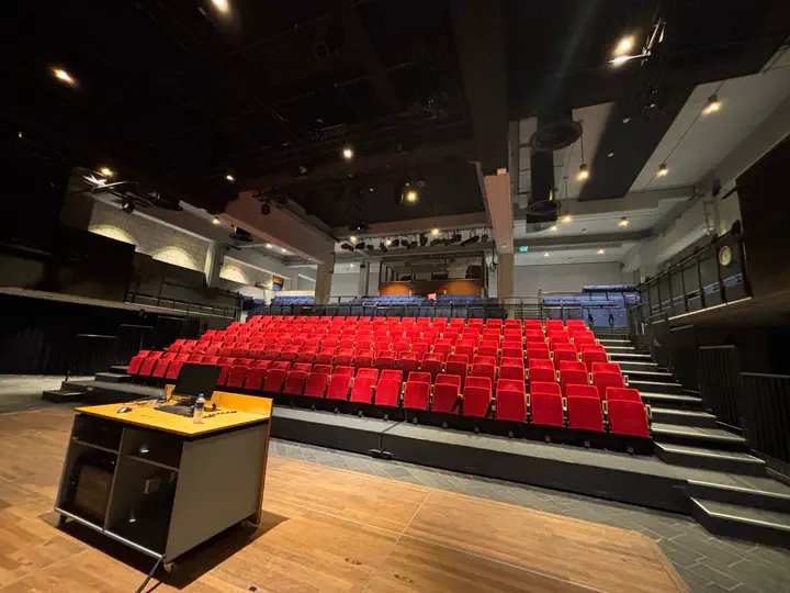 Teaching operating systems usually takes place in a lecture hall or a classroom—but today I found myself standing on the stage of Agora Theater on the campus, with rows of bright red seats in front of me and full stage lighting above.